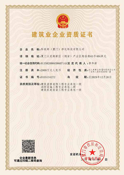 科銳特2009年開始扎根于凈化行業(yè),2013年成立科銳特(廈門)凈化科技有限公司,多年來專注做好一件事-智慧美學(xué)潔凈室集成方案提供商,現(xiàn)擁有凈化系統(tǒng)工程設(shè)計(jì)安裝貳級(jí)資質(zhì),裝修裝飾工程專業(yè)承包貳級(jí)資質(zhì),建筑機(jī)電安裝工程專業(yè)承包壹級(jí)資質(zhì),消防設(shè)施工程專業(yè)承包貳級(jí)資質(zhì),工程設(shè)計(jì)專項(xiàng)乙級(jí)資質(zhì),智慧云潔凈室系統(tǒng)發(fā)明專利,已通過ISO9001、14001、45001及GB-T50430潔凈室體系認(rèn)證,是業(yè)內(nèi)頗具性價(jià)比智慧美學(xué)潔凈室集成方案提供商。
